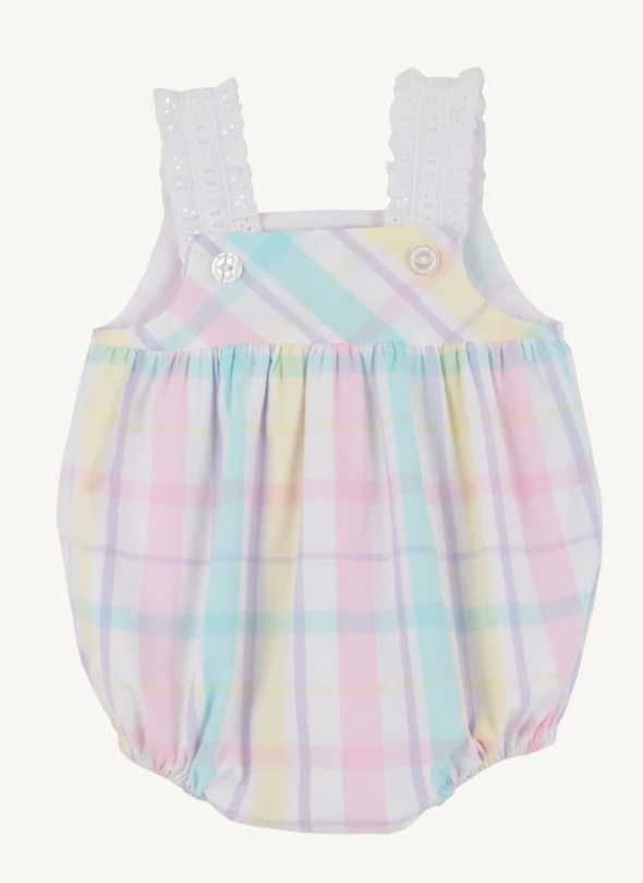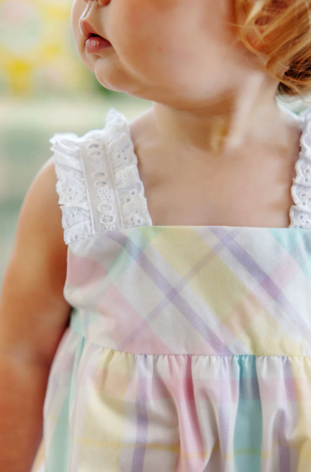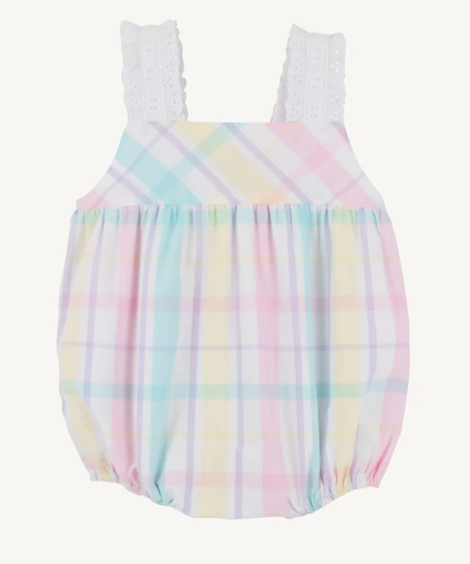 The Babs Bubble in Brunch Plate Plaid with Worth Avenue White is the Easter outfit you've been dreaming of! This precious bubble features a pastel plaid pattern paired with a crisp white collar that brings timeless Southern charm to every spring celebration. Made with comfortable fabric that moves with your little lady through egg hunts, family brunches and all those special springtime moments you'll treasure forever—this is the piece that makes getting dressed for Easter morning absolutely effortless and oh-so-sweet!