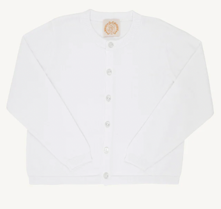 BEAUFORT BONNET CAMBRIDGE CARDIGAN PEARLIZED BUTTONS WORTH AVE WHITE