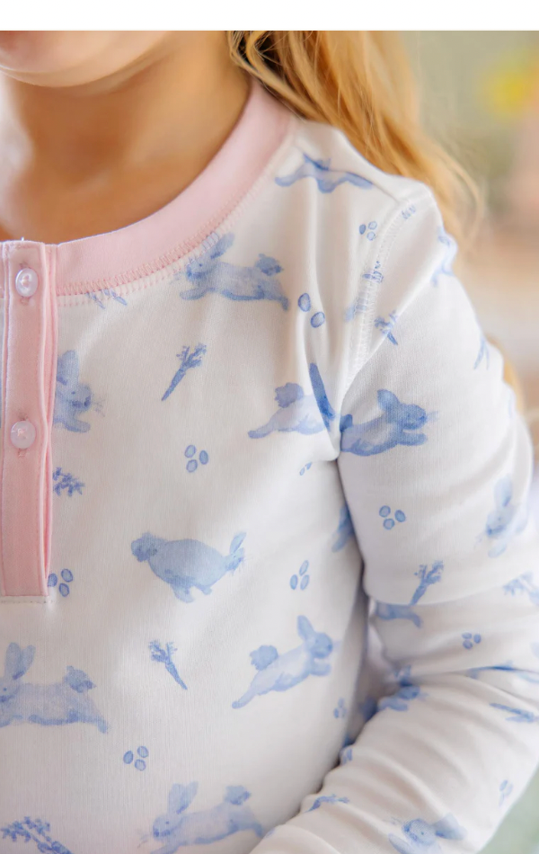 Sara Jane's Sweet Dream Set in Lindon Hill Hops with Palm Beach Pink is the two-piece pajama set that makes bedtime absolutely precious! This charming set features our delightful bunny print on soft, comfortable fabric that's perfect for sweet dreams and cozy mornings. Designed with timeless style and quality craftsmanship, this is the sleepwear that brings joy and cuteness to every nighttime routine!