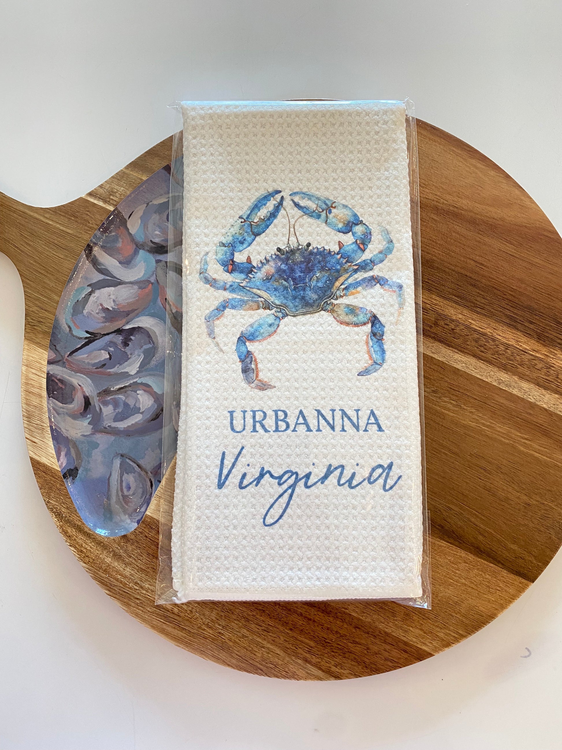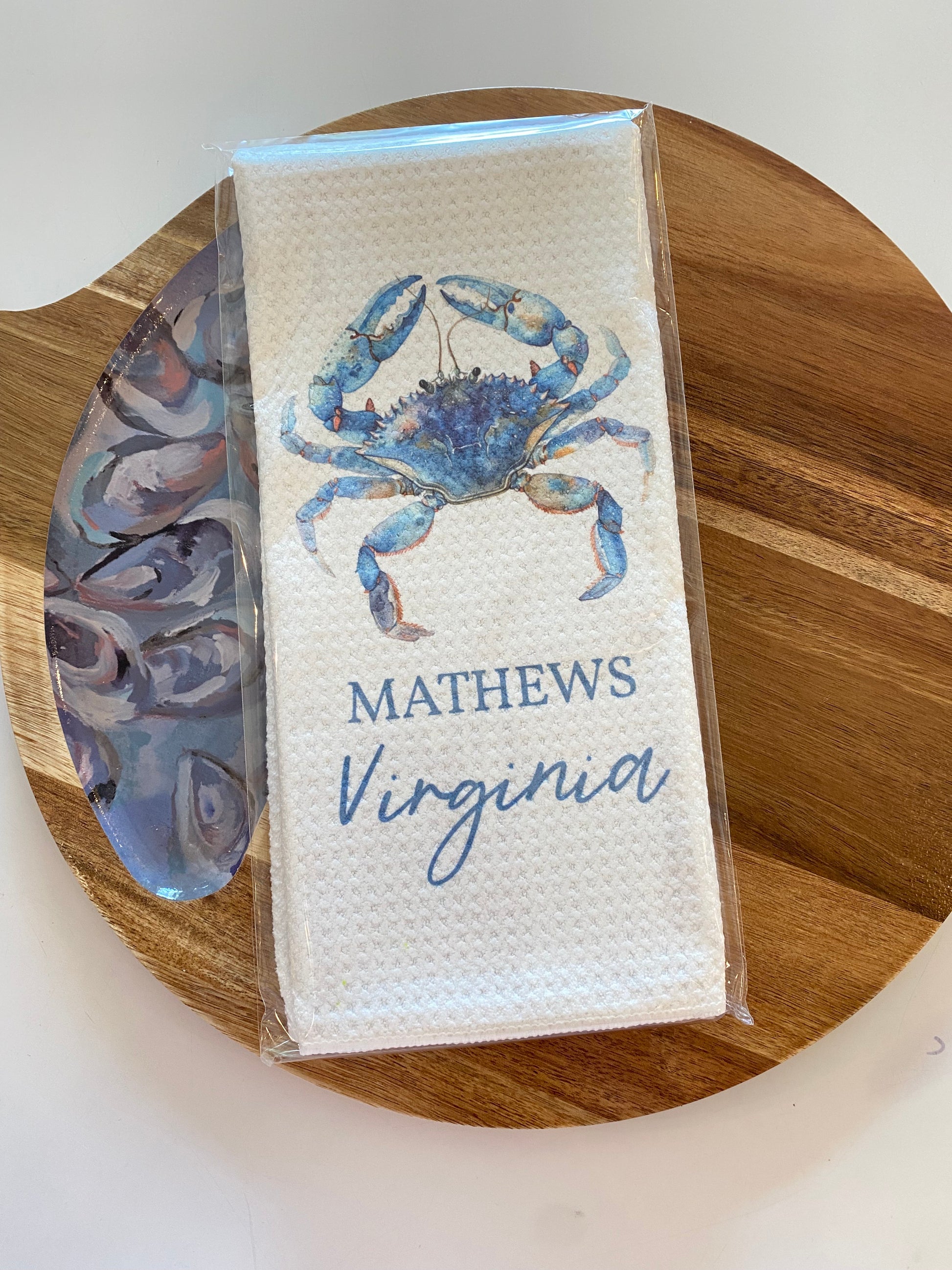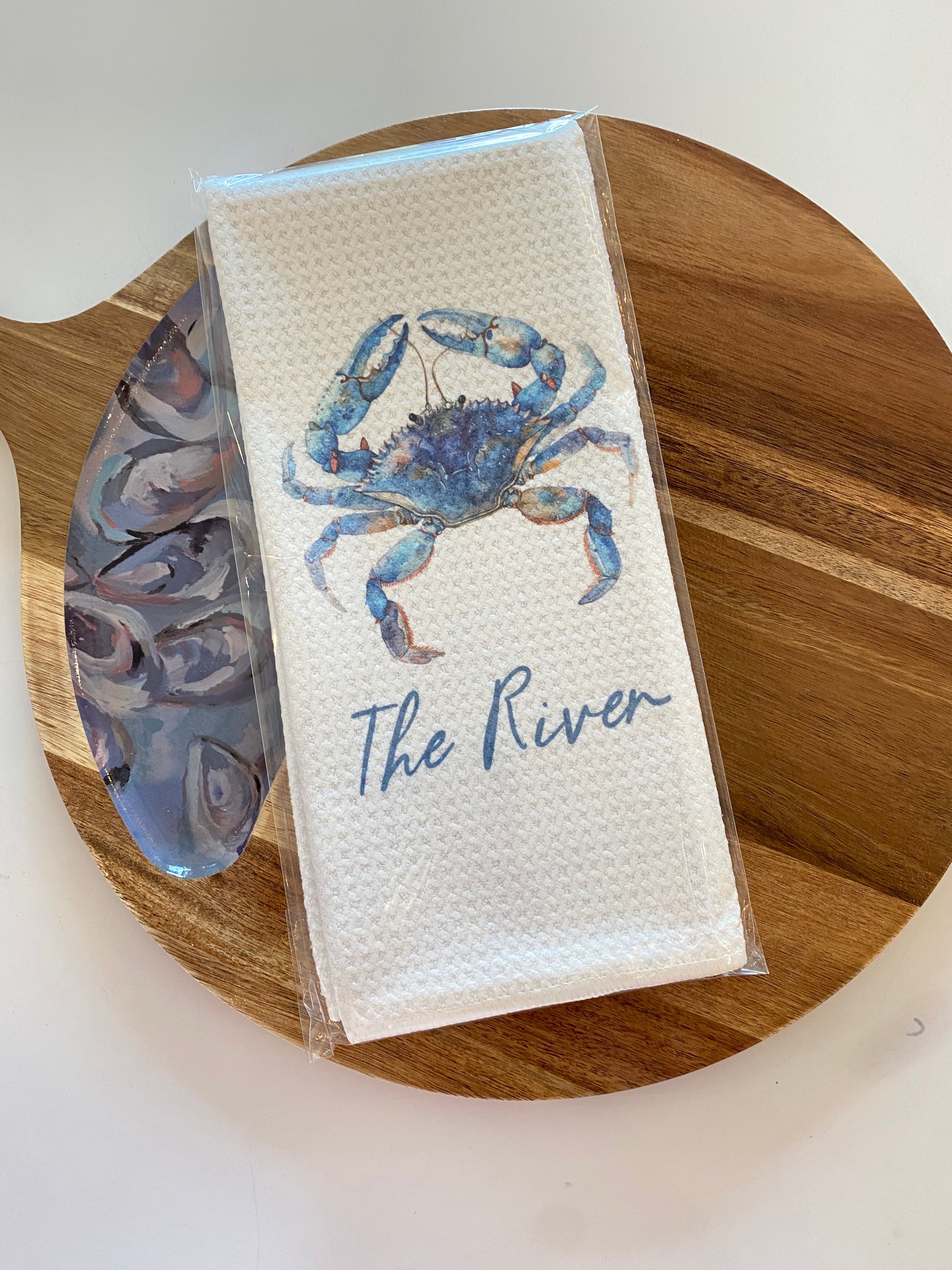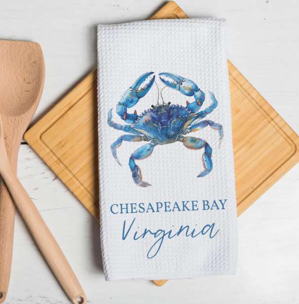 This blue crab towel is the perfect addition to your ocean or beach home and kitchen decor, and also makes a great housewarming gift. - Measures approximately 16”x 24” - Made of 80% Polyester and 20% Polyamide. - Design is permanently printed - Individually packaged in cellophane sleeve and ready to be gifted - It is called a waffle weave because the towel has raised looped edges on the surface of the towel in the shape like that on a delicious Belgian Waffle. These “pockets'' that are created hold water while the surface of the cloth stays dry making it an exceptional drying towel! The raised looped edges on this lint free towel make it great for all around use, while also being great on glass.