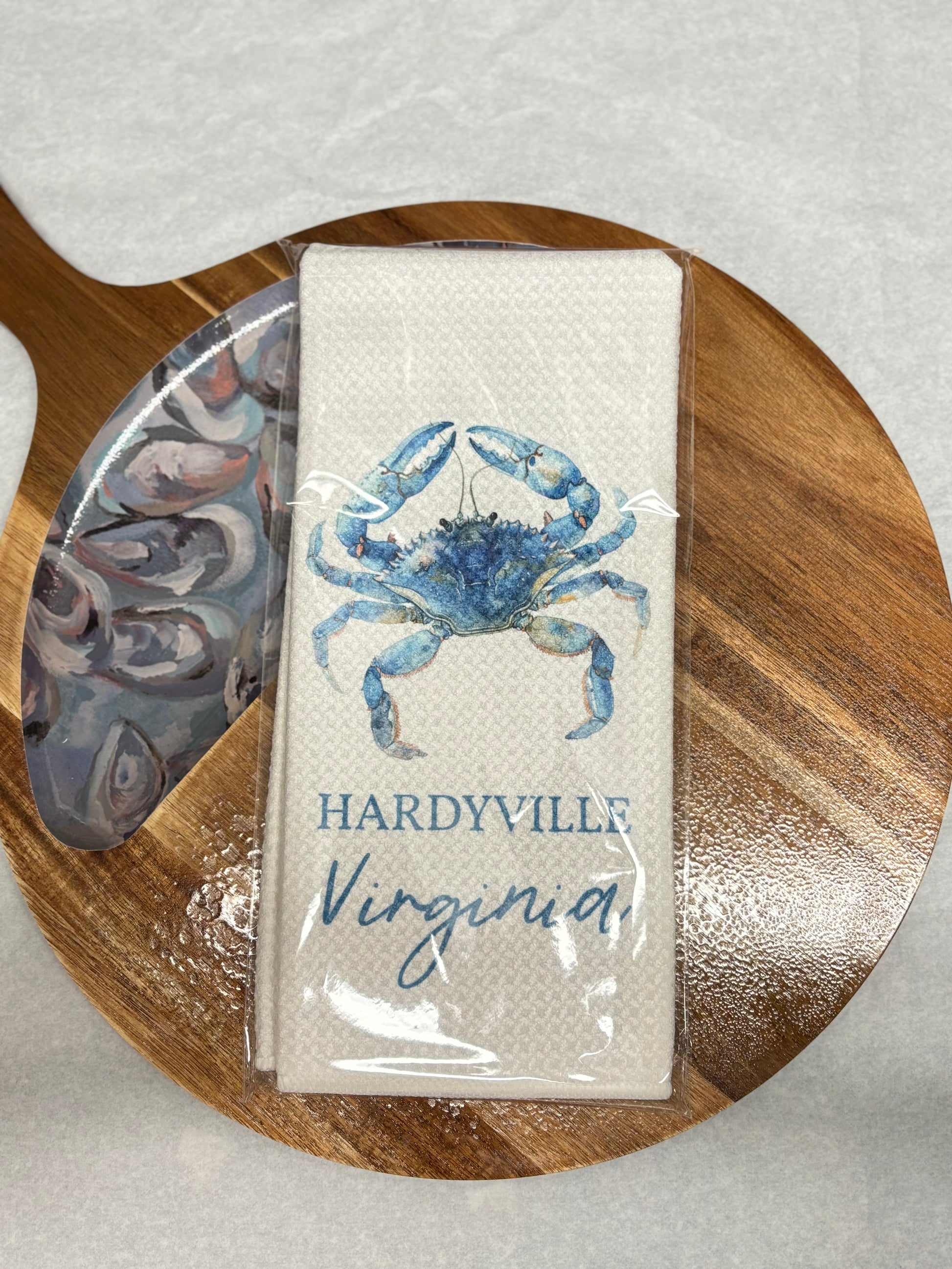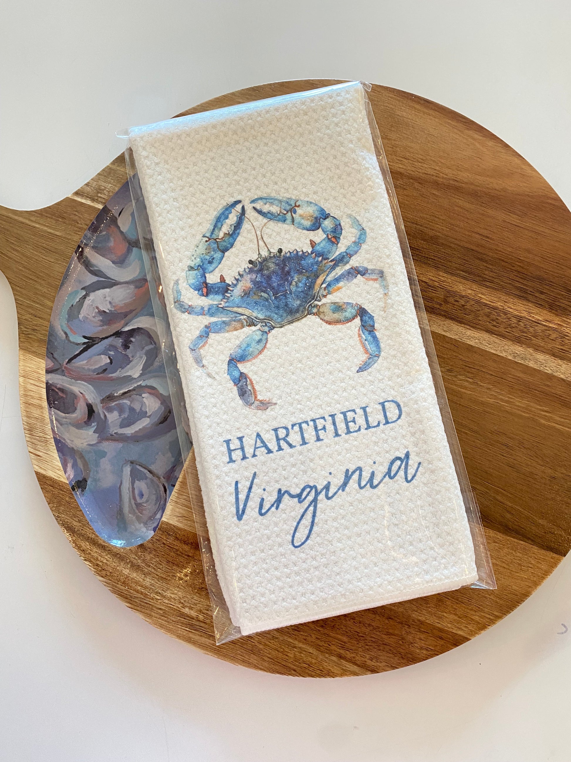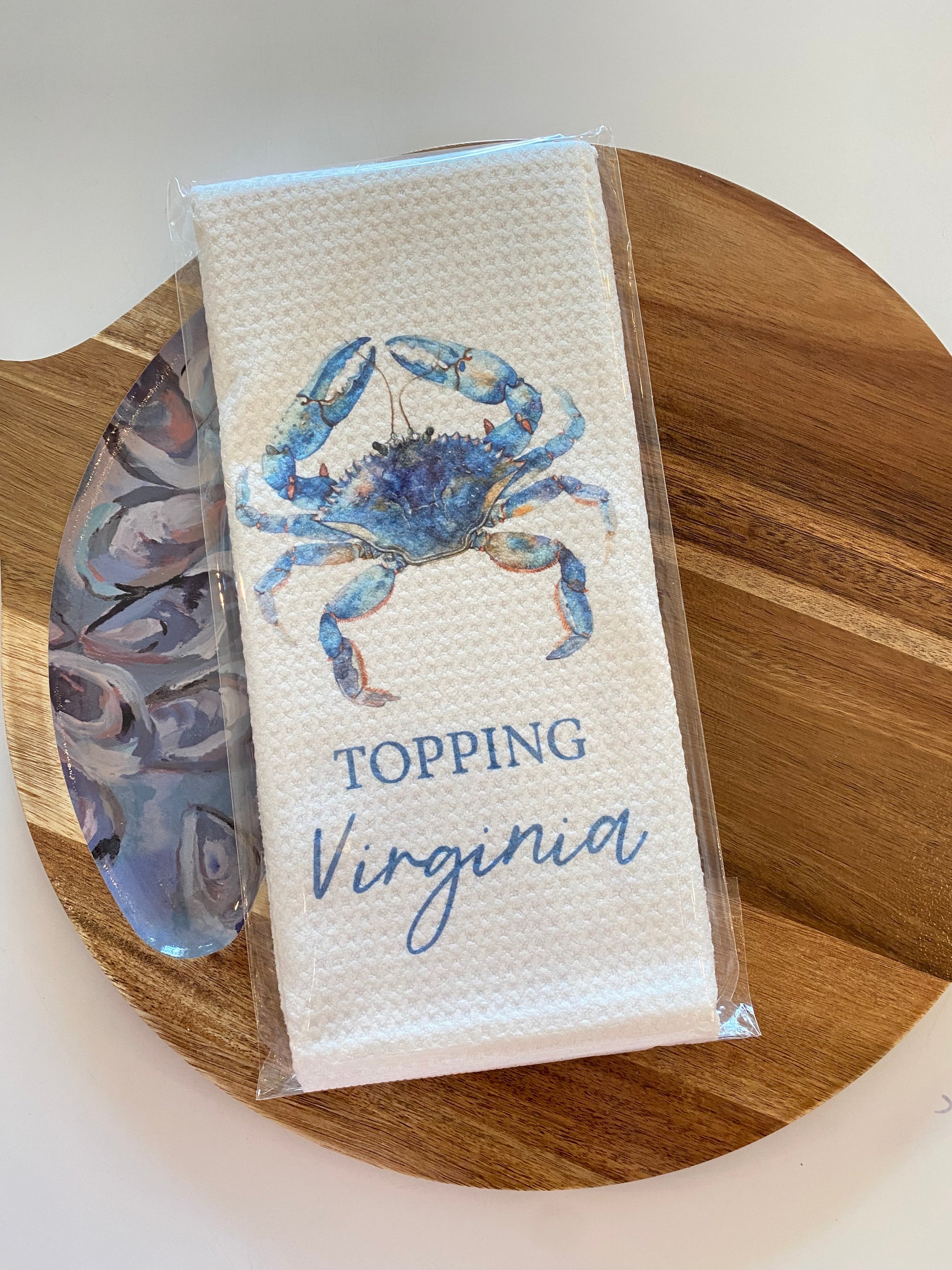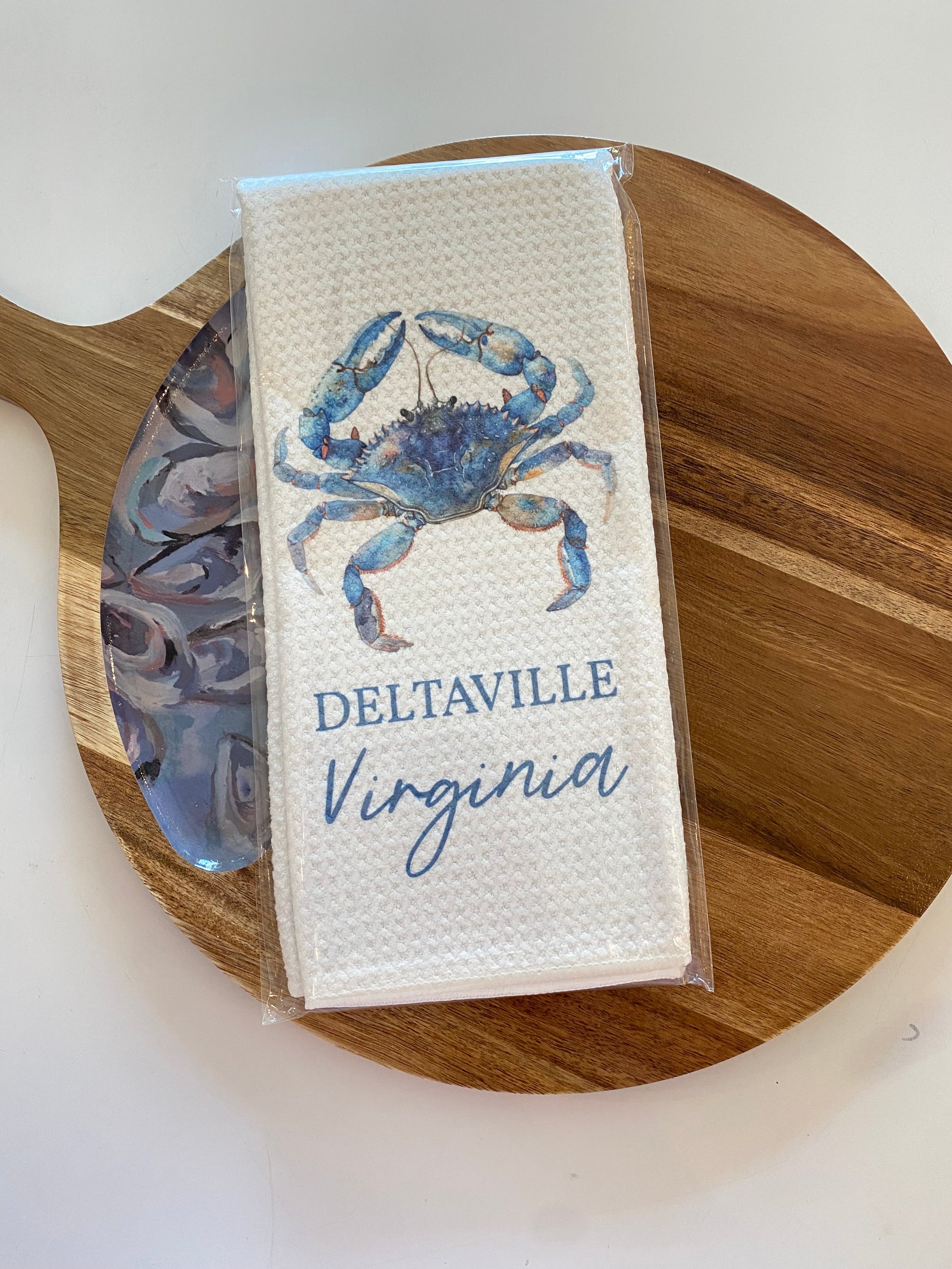 This blue crab towel is the perfect addition to your ocean or beach home and kitchen decor, and also makes a great housewarming gift. - Measures approximately 16”x 24” - Made of 80% Polyester and 20% Polyamide. - Design is permanently printed - Individually packaged in cellophane sleeve and ready to be gifted - It is called a waffle weave because the towel has raised looped edges on the surface of the towel in the shape like that on a delicious Belgian Waffle. These “pockets'' that are created hold water while the surface of the cloth stays dry making it an exceptional drying towel! The raised looped edges on this lint free towel make it great for all around use, while also being great on glass.
