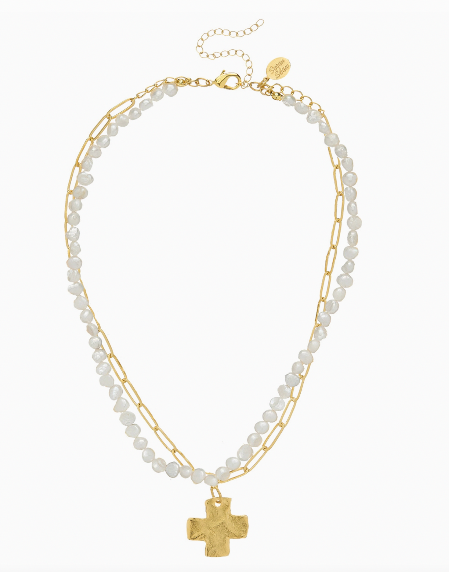 It's never been easier to achieve a layered look than with the Cross Piper Paperclip Necklace. This dainty, double-strand necklace takes the guesswork out of layering your jewelry — plus, it won't tangle. Featuring genuine freshwater pearls and our bestselling paperclip chain with a classic cross pendant, the Cross Piper Paperclip Necklace will instantly and effortlessly add a little extra something to any outfit.