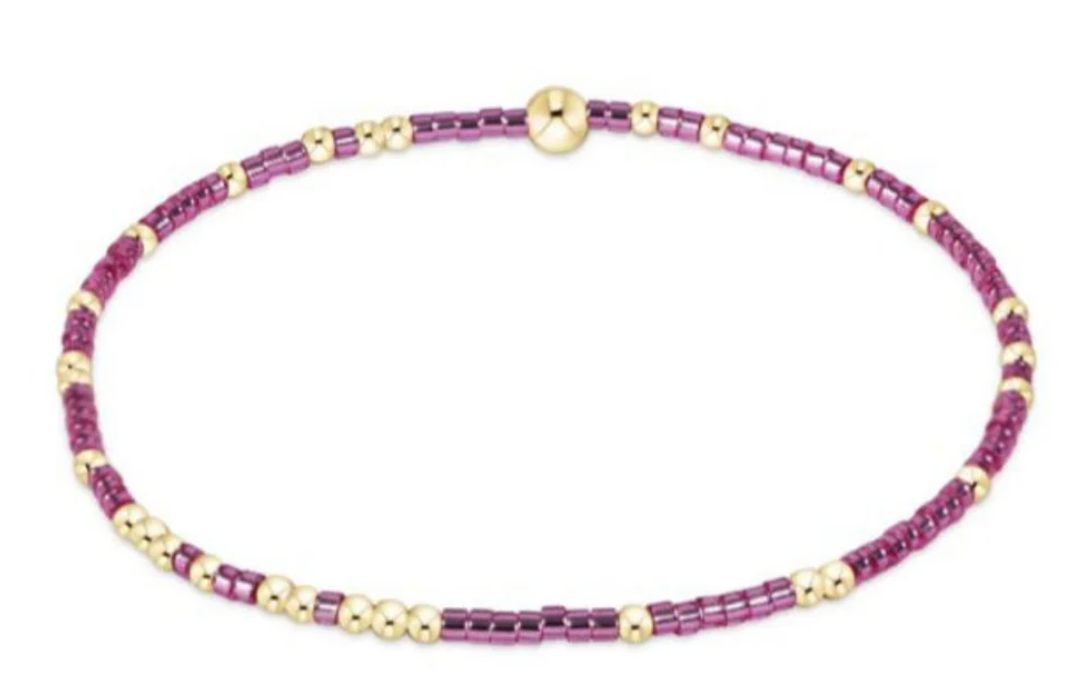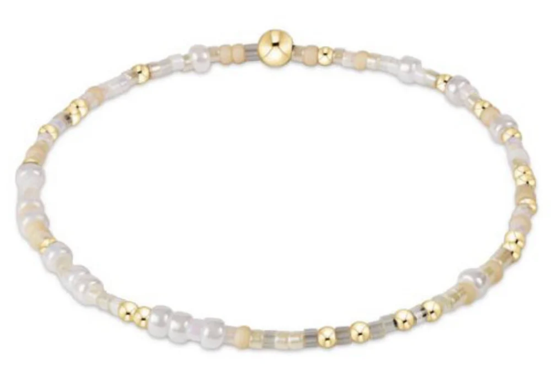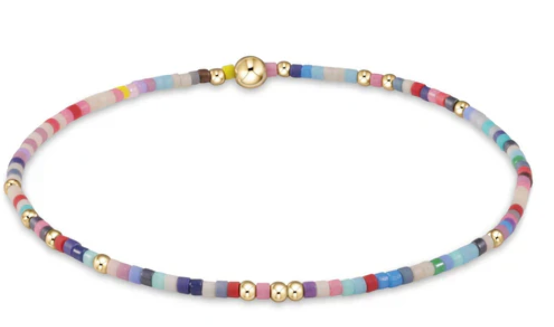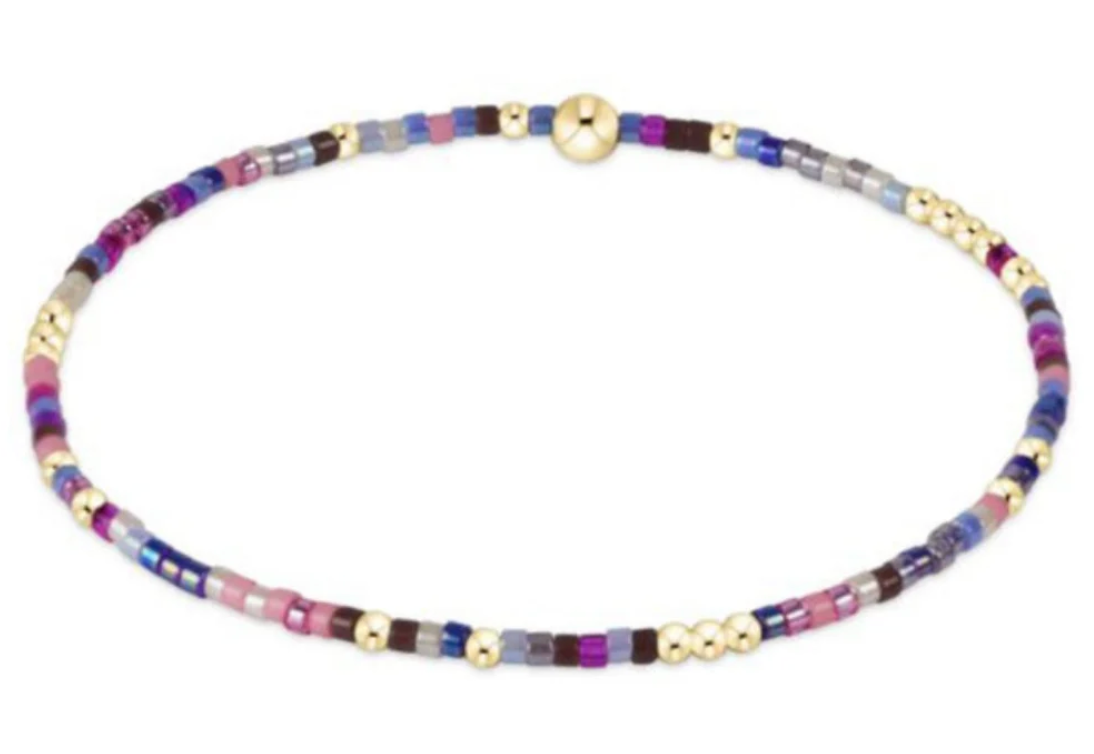 Hand beaded on high performance elastic for a slight stretch to easily roll on and off your wrist