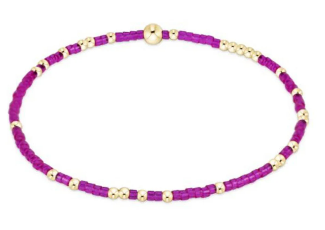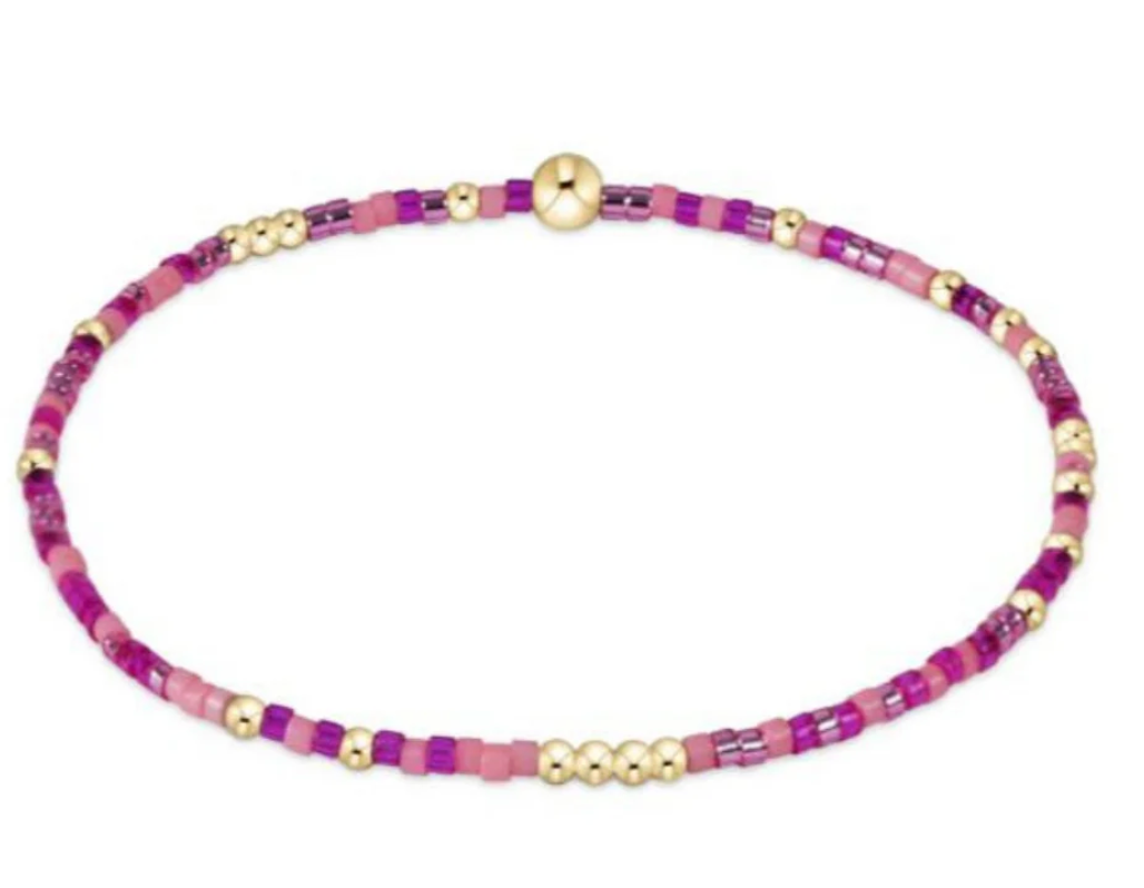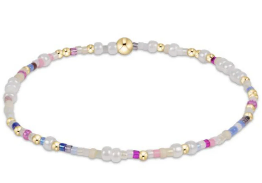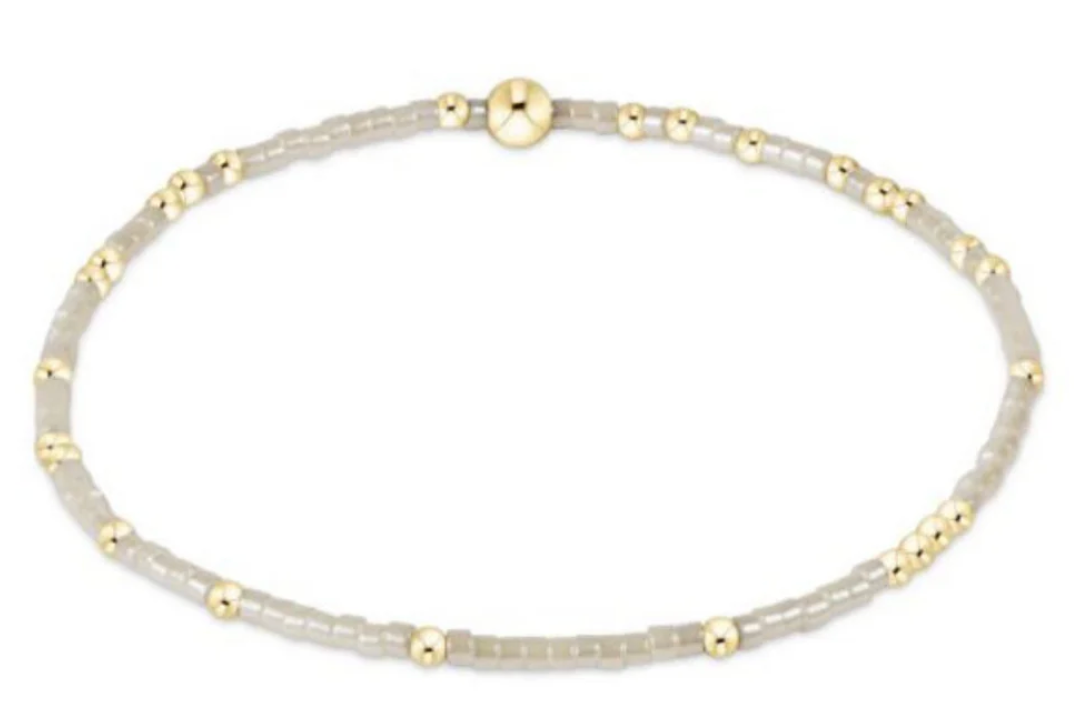 Hand beaded on high performance elastic for a slight stretch to easily roll on and off your wrist