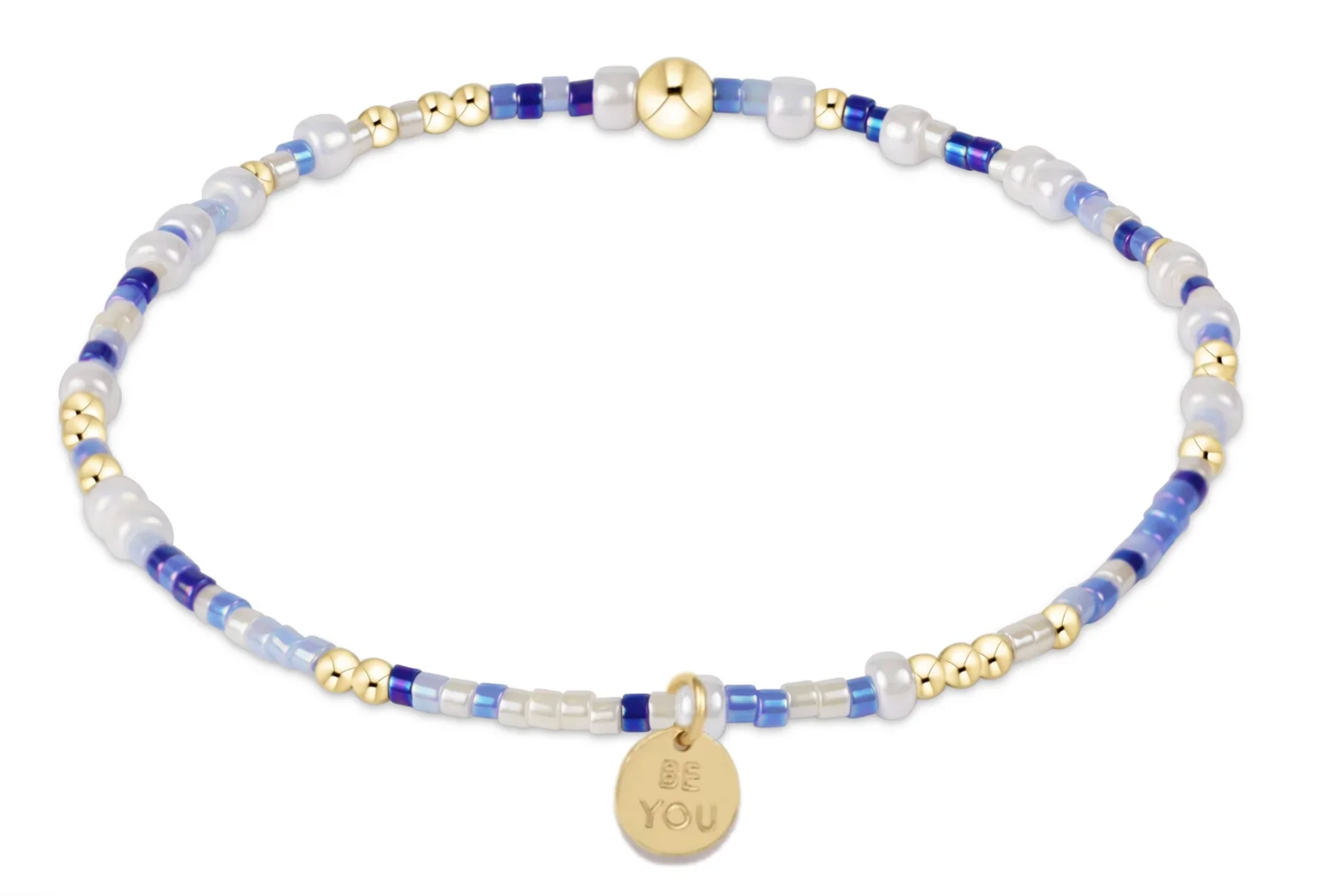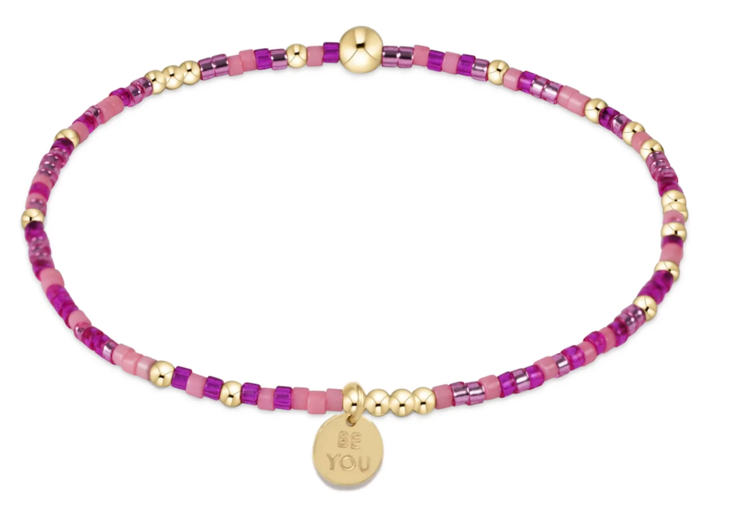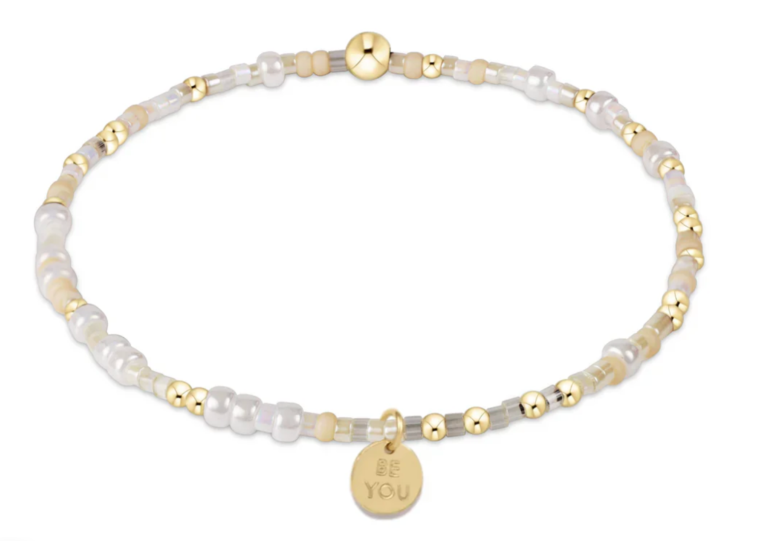 Hand beaded on high performance elastic for a slight stretch to easily roll on and off your wrist
