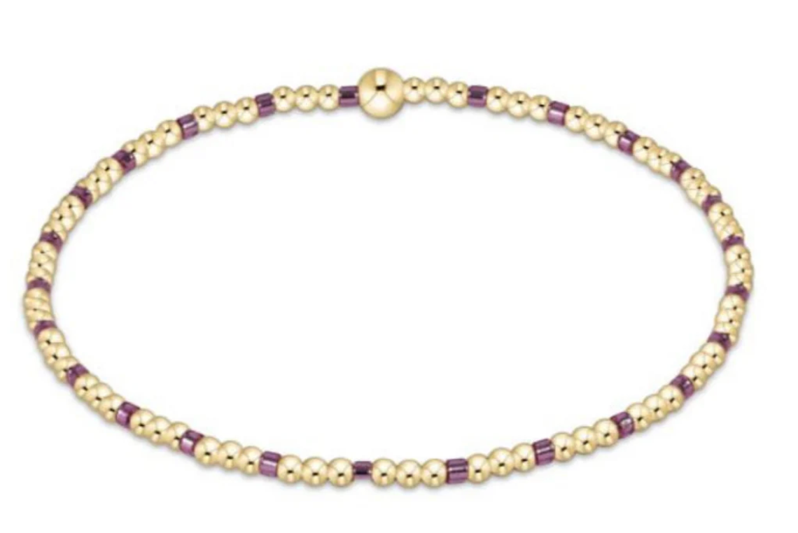 Hand beaded on high performance elastic for a slight stretch to easily roll on and off your wrist