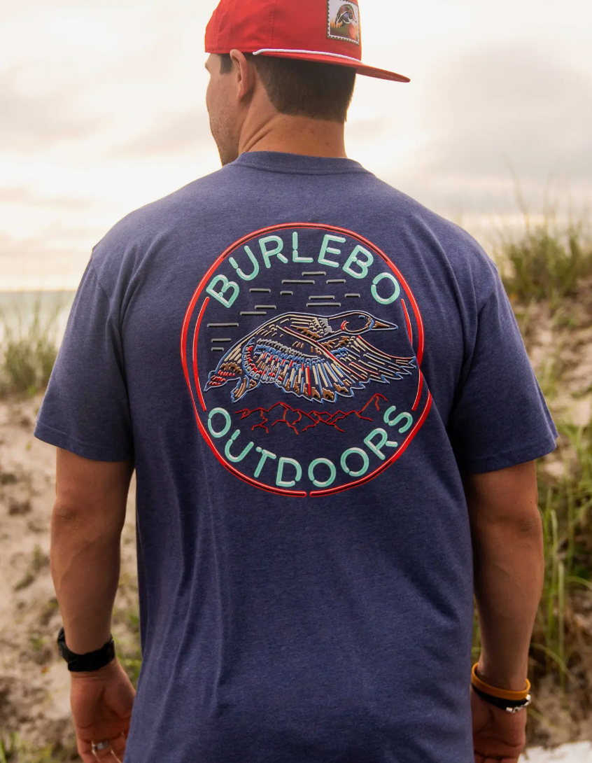 Shown in heather navy - 50% ring spun cotton and 50% polyester - Short sleeve tee - Trey is 6'1 210 lbs wearing a size large