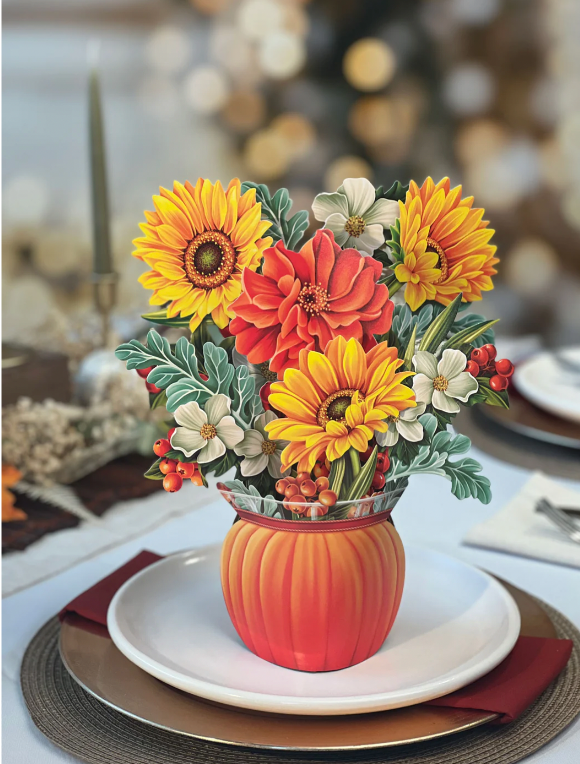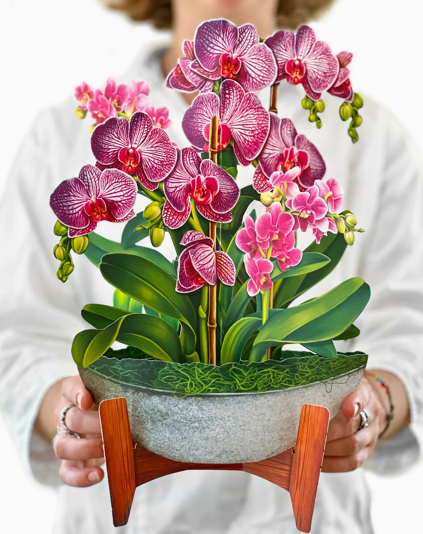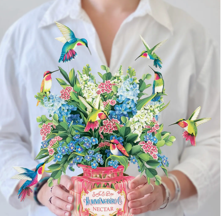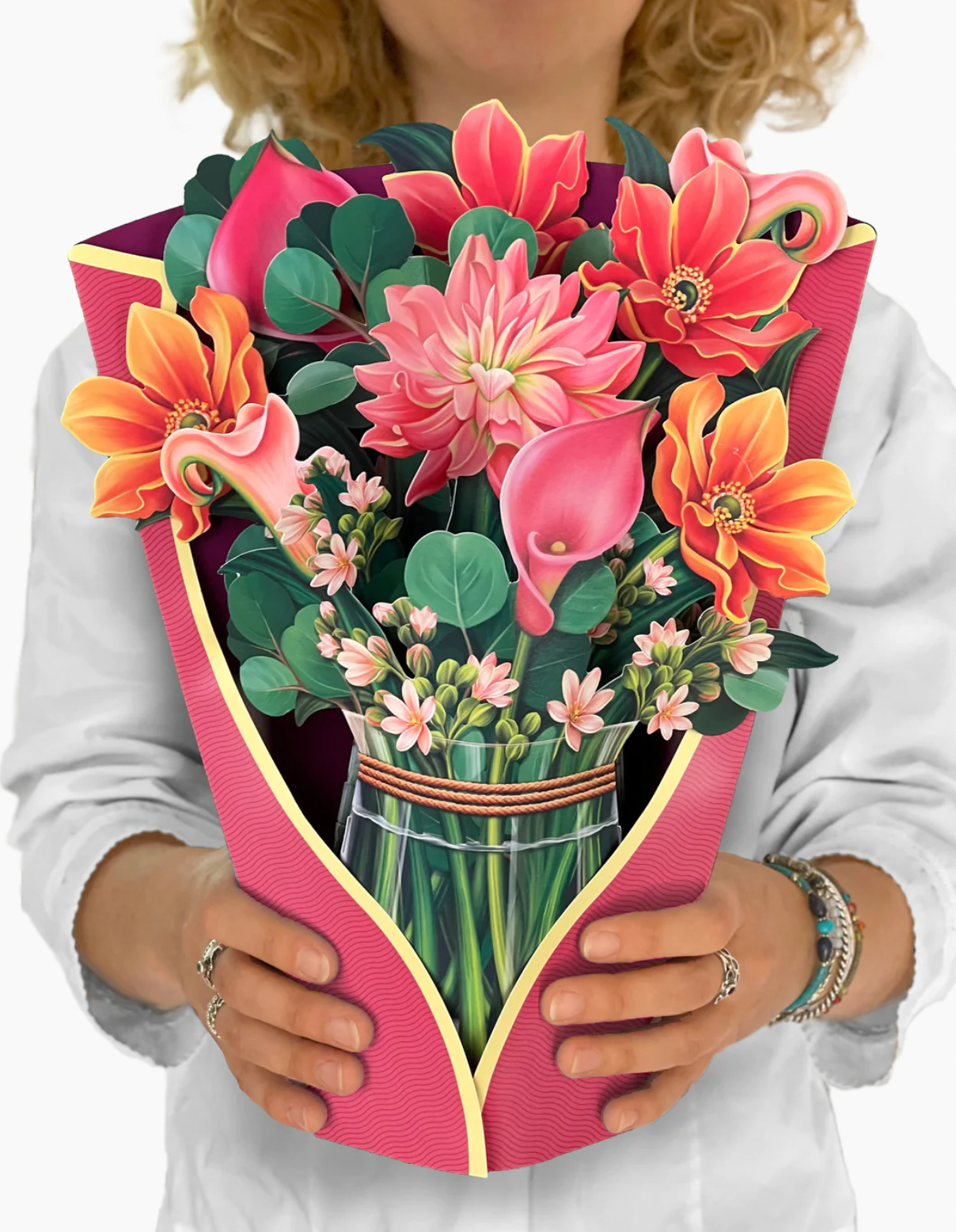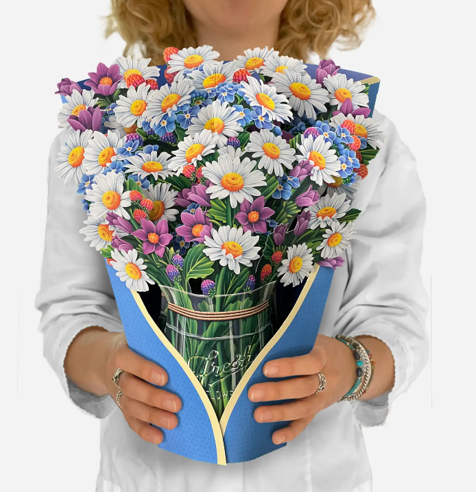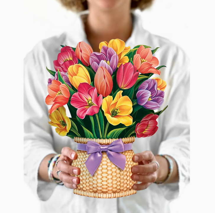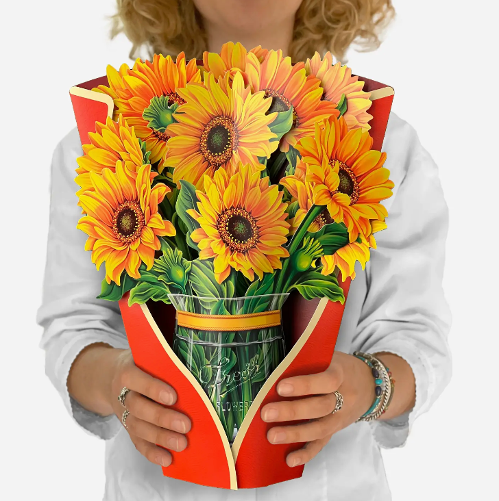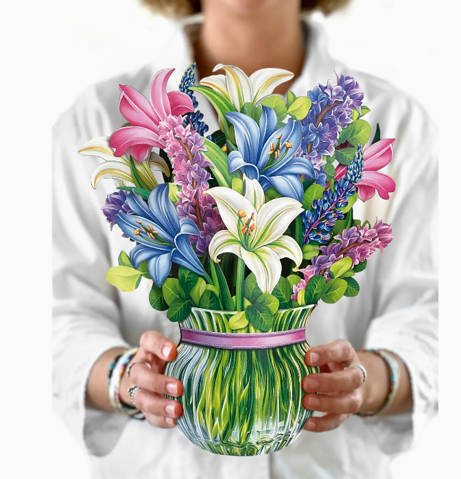 - Includes: bouquet, matching bouquet note card, paper vase, and vibrant mailing envelope