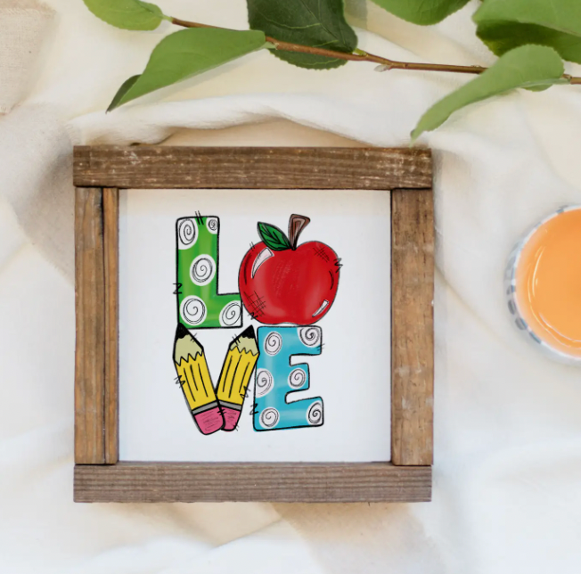 TEACHER LOVE WOOD SIGN 6 X 6