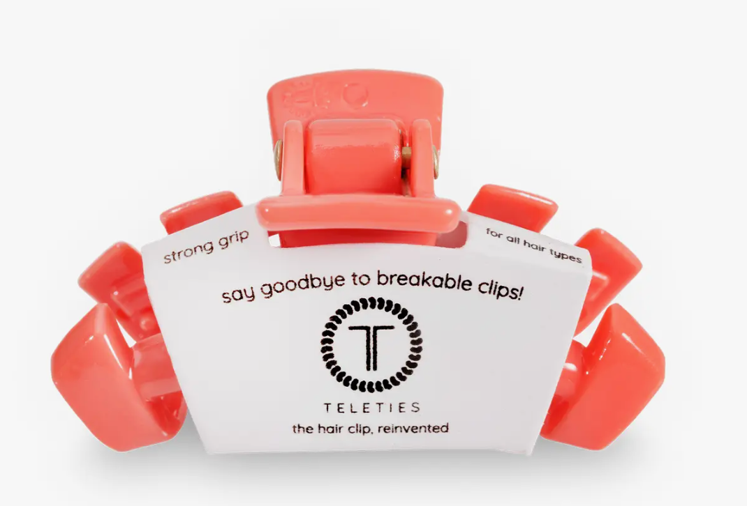 Say goodbye to breakable clips! We have perfected the hair tie and now have re-invented the clip. Each clip has bendable teeth that take back to shape, they work on all hair types and have a strong hold. Hold your hair and enhance your style with the new TELETIES Clip!